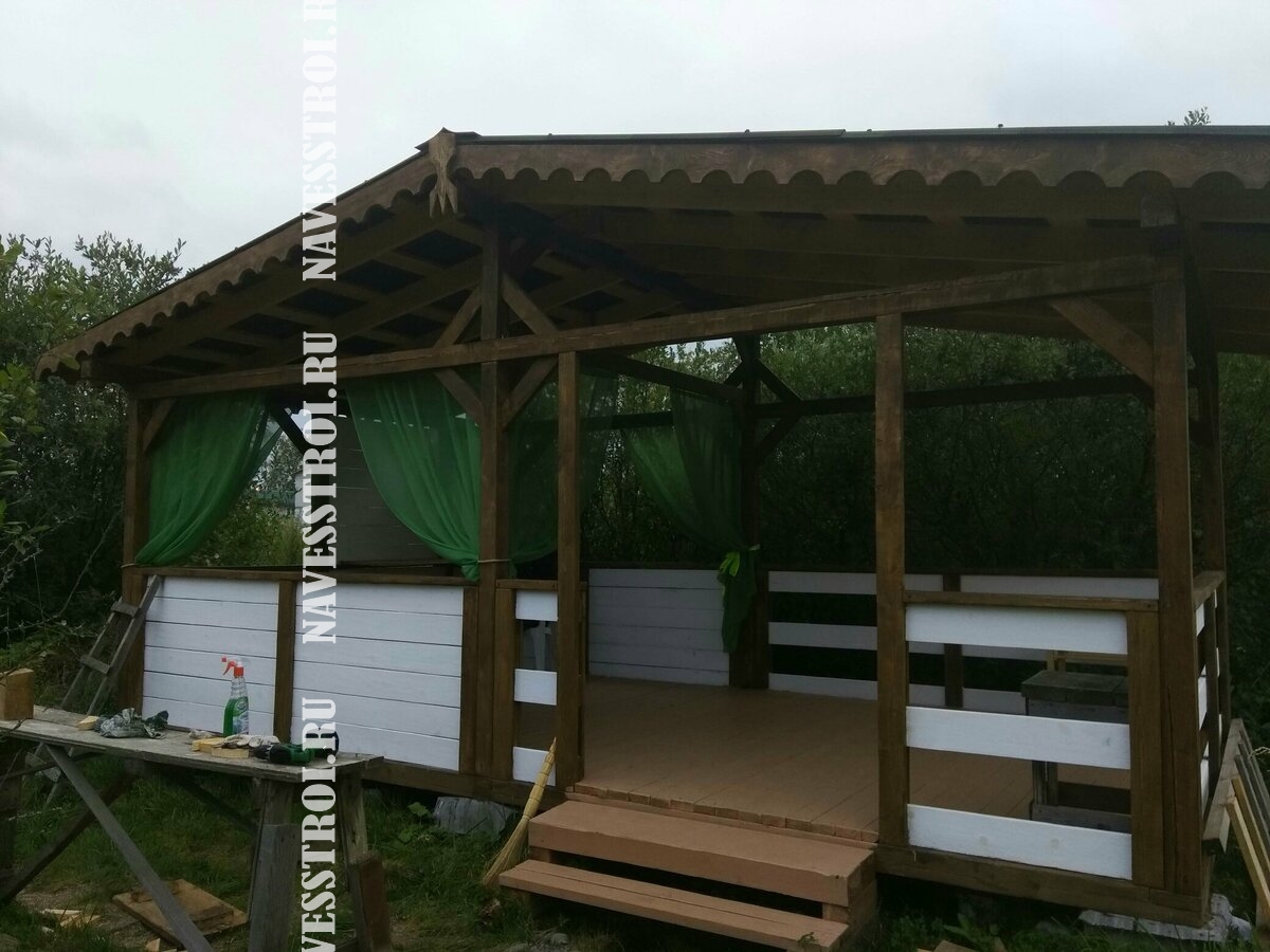 За день на даче изготовили арочный навес 5 на 7 с покрытием поликарбоната. Привезли уже готовые крашенные фермы и весь остальной материал. Все за собой убрали и увезли мусор. Молодцы!